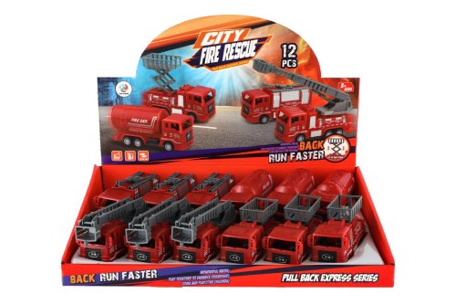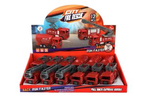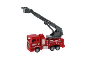 Vyberte si své oblíbené hasičské auto. Auto je na zpětné natažení. Varianta se žebříkem má vysouvací žebřík. Varianta s plošinou má vysouvací plošinu. Rozměr auta: 11 cm Vhodné pro děti od 3 let