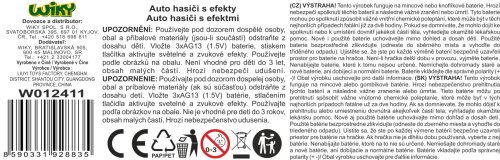 Světelné a zvukové efekty, aktivace tlačítky na střeše. Volná kola.