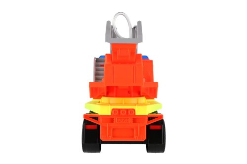 6mm tlusté kovové osky u kol. Funkční požární stříkačka s dostřikem až 3m. 250ml integrovaná nádobka na zásobu vody. Možnost otáčení s žebříkem v 270stupňů. Výsuv žebříku 60cm. Poznámka: Plňte pouze vodou, nepoužívejte žádné jiné tekutiny. Z hygienických důvodů doporučujeme hračku po použití zcela vyprázdnit.