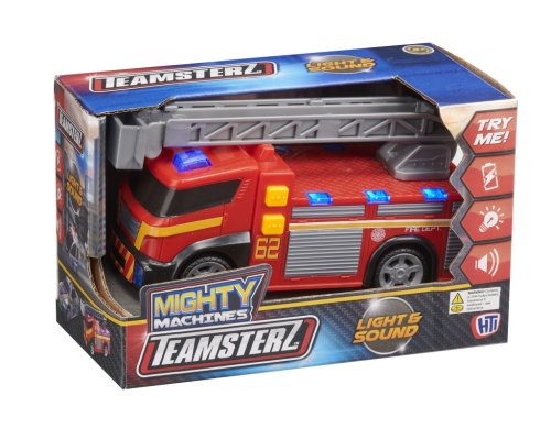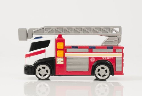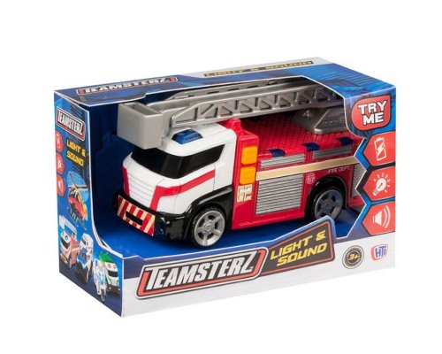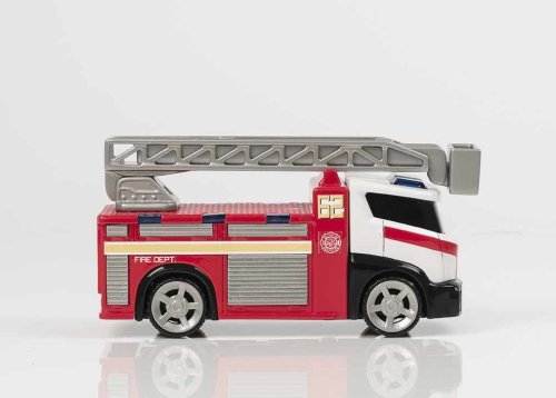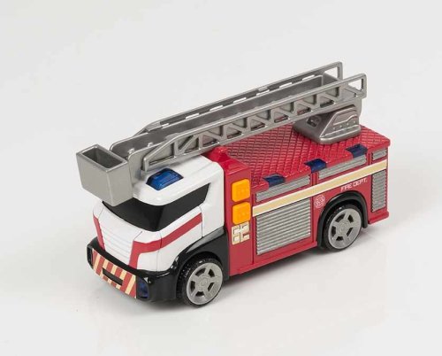 Auto hasičské se světelnými a zvukovými efekty. Velikost 16 cm. Volná kola. 3xAG13 baterie součástí.