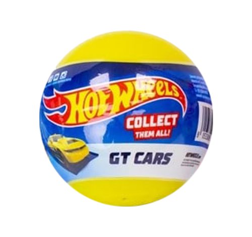 Krabička/kapsle/koule s překvapením obsahující kovové autíčko Hot Wheels GT, 65mm, autíčko má pohon na pull-back, 12 druhů