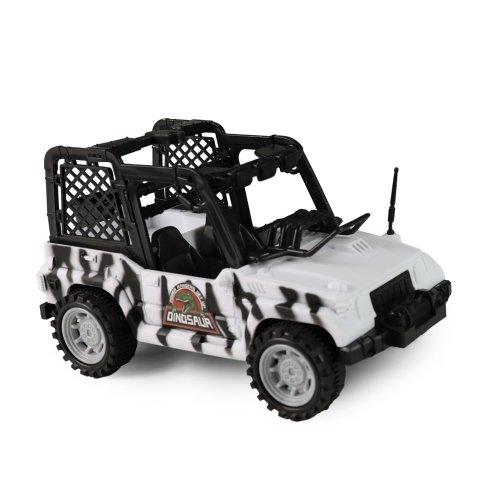 Připrav se na napínavé dobrodružství v divočině! Tato akční sada obsahuje terénní auto o délce 21 cm, které jezdí na volný chod. Hlavní hvězdou sady je realistický dinosaurus se světelným a zvukovým efektem, který při stisknutí vydává řev a svítí. Má pohyblivé končetiny, takže děti si s ním užijí spoustu zábavy. Sada je doplněna o figurku vojáka, který je připraven čelit všem nástrahám prehistorického světa. Pro světelný a zvukový efekt je potřeba 3 ks baterií typu AG3, které jsou uvnitř výrobku.