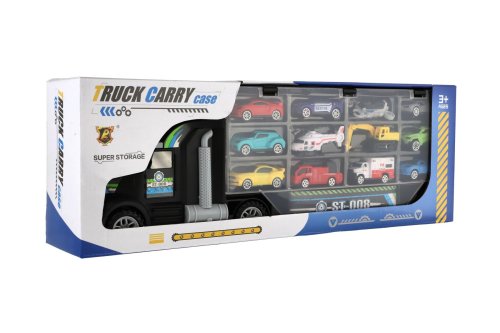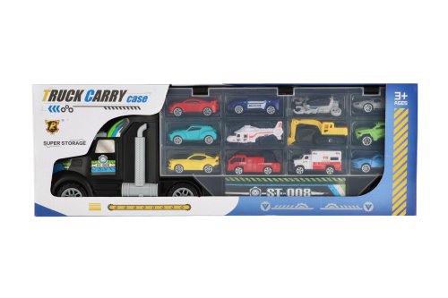 Velký kamion přepravník s volným chodem potěší všechny malé milovníky aut! Kamion slouží jako úložný box a zároveň jako herní set – uvnitř se ukrývá prostor pro uložení mnoha dopravních prostředků, které lze snadno převážet i vystavovat. Přední i zadní rampa umožňuje pohodlný vjezd i výjezd autíček, a díky madlu lze kamion jednoduše přenášet. Nechybí ani přistávací plocha pro vrtulník – ideální hračka na cesty i na doma! Velikost hračky: 50 cm