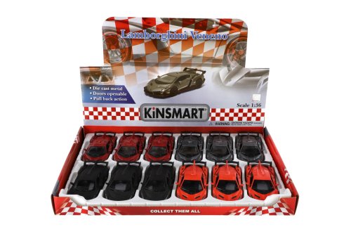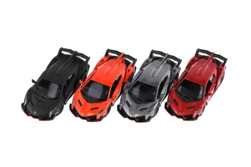 Krásný a věrný kovový model sportovního auta Lamborghini Veneno. Dostupné je ve 4 barevných variantách a je na zpětné natažení. Vhodné od 3 let.