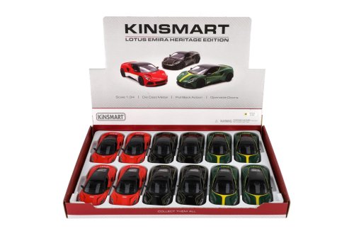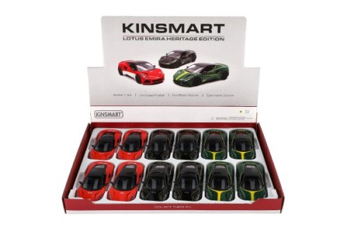 Krásný kovový model auta Lotus Emira 1:38. Autíčko má otevírací dveře a je na zpětné natažení. Dostupné ve třech barevných variantách. Velikost auta je 12 cm. Vhodné pro děti od 3 let