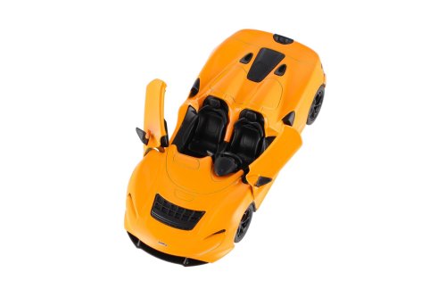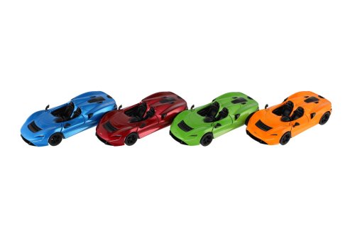 Extrémní výkon, otevřená konstrukce a luxusní styl – to je McLaren Elva, nyní jako detailně propracovaný kovový model od značky Kinsmart. Auto je vybaveno zpětným natažením (pull-back) a otevíracími dveřmi, což z něj dělá perfektní hračku i sběratelský kousek. Velikost auta: 13 cm Vhodné pro děti od 3 let