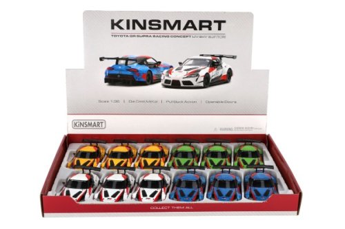 Krásný kovový model auta Toyota GR Supra Racing v měřítku 1:36. Autíčko má otevírací dveře a je na zpětné natažení. Dostupné ve čtyřech barevných variantách. Velikost auta je 13 cm. Vhodné pro děti od 3 let