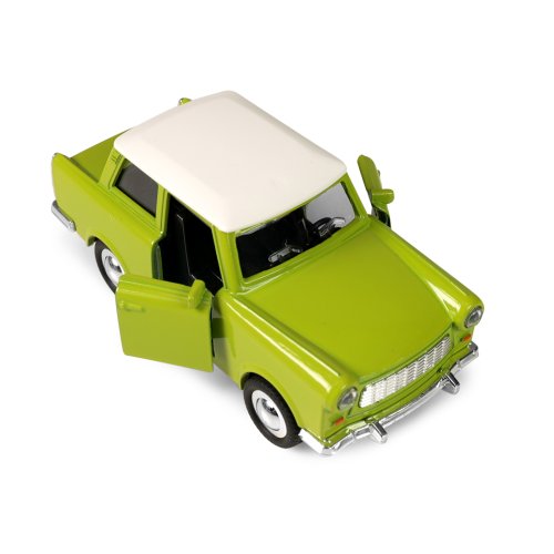 Senzační kovové retro auto Trabant na zpětný setrvačník, má otevírací dveře a jeho délka je cca 12 cm. Tato hračka je skvělým dárkem pro všechny sběratele autíček!