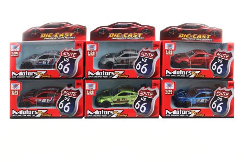 Kovový model sportovního auta na zpětný chod. Rozměry auta cca 10x4x3 cm. Rozměry balení cca 15x8x6 cm. Věk 3+