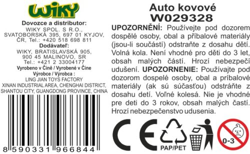 Auto kovové. Velikost 7 cm. Volná kola. 4 varianty - bílá, žlutá, zelená, černá.