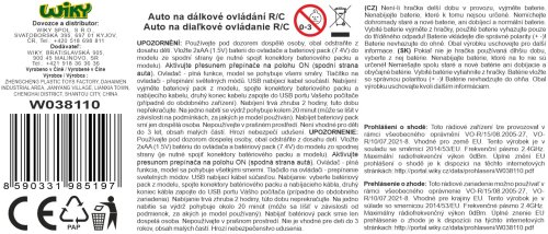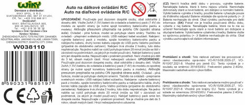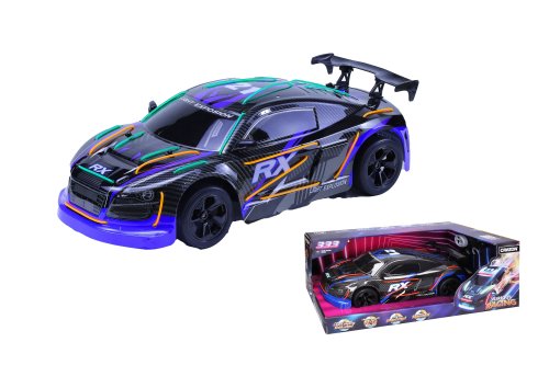Auto Light Explosion RC na dálkové ovládání. Rozměry 44x19x14 cm. Frekvence 2.4GHz. Pistolový ovladač. Rychlost 15 km/h. Světelné efekty, přepínání módů tlačítkem na ovladači. 7.4V 500mAh bateriový pack do auta součástí, 2xAA do ovladače není součástí. USB kabel součástí.