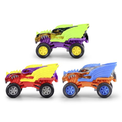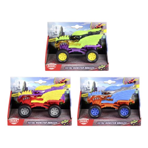 Auto Monster Dragon do terénu s kovovým tělem na natažení, gumové pneumatiky. Délka 15 cm, 3 barevné variaty.