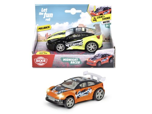 Autíčko na zpětné natažení se zvukem a hudbou. Délka cca 11,5 cm. 2 barevná provedení.