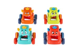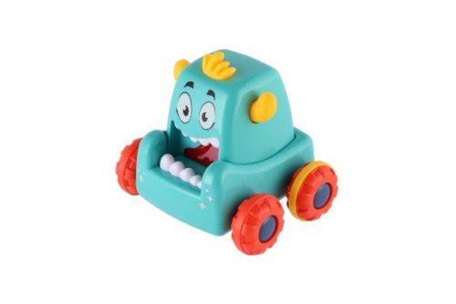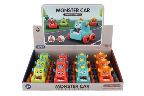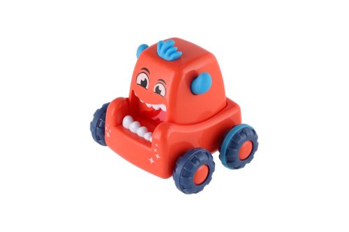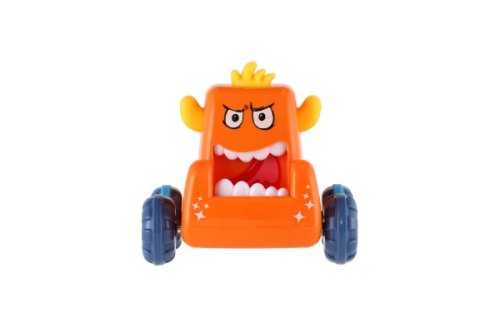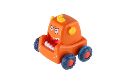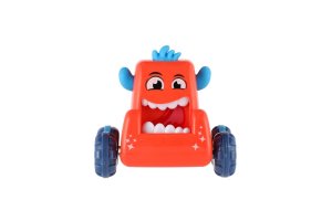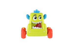 Stiskněte hlavu monster auta, pusťte ji a malá příšerka vyrazí rychle vpřed. Rozměr auta: 9 x 8 cm Vhodné od 3 let