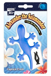 Hravý osvěžovač vzduchu POWER AIR Alexander ve tvaru mloka k upevnění do mřížky ventilátoru automobilu.