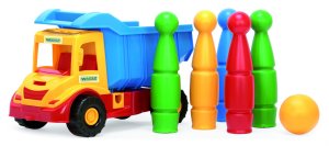 Auto Multiruck se sklápěčkou a nakladačem je vyroben z kvalitních nezávadných plastů značky Wader. Hračka je ideální jak na domácí použití tak i ven na pískoviště. K tomuto autu jsou také kuželky. Vhodné od 12 měsíců.