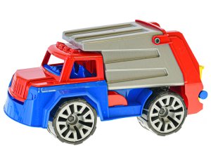 Který kluk netoužil stát se alespoň na chvíli popelářem!? S tímto plastovým autem o velikosti 32 cm jde vyrazit i na písek. Protože je na volný chod, snadno se udržuje. Stačí jej opláchnout v teplé vodě, dobře vysušit a malý popelář s ním může jezdit i doma na koberci.