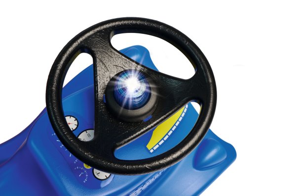 Robustní auto odstrkovadlo s ergonomickým sedadlem v modré barvě s nálepkami policie v 10 různých jazycích. Praktický volant s elektronickým policejním zvukovým a světelným modulem a mechanickým klaksonem. Rozměry: 58 x 30 x 38 cm. Max. nosnost 50 kg. Hmotnost 3,6 kg.