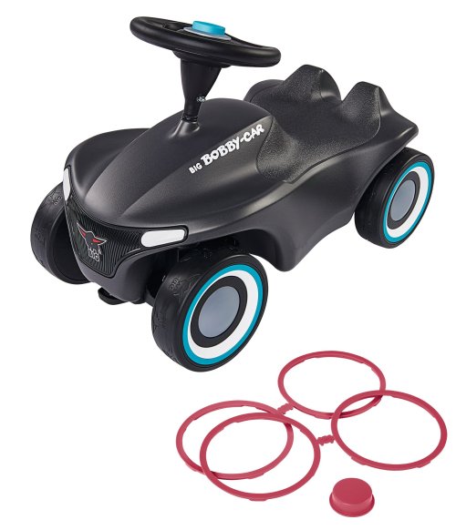 Auto odstrkovadlo Big Bobby Car Neo v novém moderním designu, v antracitovém provedení. Možnost volby designu umožňuje výměna ráfků za růžové nebo tyrkysové, které jsou součástí balení. S velmi kvalitní tištěnou mřížkou a tištěnými světly vpředu a vzadu. Klason na volantu, ergonomické protiskluzové sedadlo s bezpečnostním prostorem pro kolena a vysoce kvalitní tichá kolečka s profilem BIG-buffalo. Očko na přichycení např. provázku nebo vodící tyče vpředu i vzadu. Max. nosnost 50 kg. Rozměry: 57 x 39 x 30 cm.