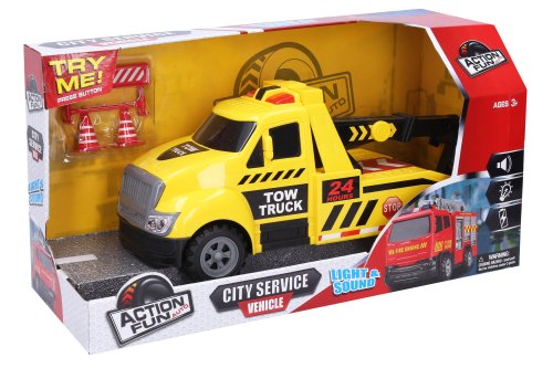 Odtáhni špatně zaparkované auto a ukaž řidičům, kdo je ve městě skutečným pánem. Auto odtahovka na setrvačník. Velikost 32 cm. Světelné a zvukové efekty, aktivace tlačítkem na střeše. Pohon na setrvačník. Pohyblivé rameno s hákem. Doporučený věk: 3+