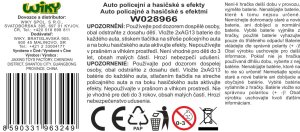 Auta policejní a hasičské s efekty. Velikost 23 cm. Volná kola. Světelné a zvukové efekty tlačítkem na střeše policejního auta a tlačítkem na levém boku hasičského auta. 2xAG13 baterie pro každé auto (4xAG13 celkem), součástí.