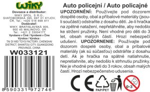 Auto policejní kovové. Rozměry 12x5,3x3,8 cm. Na zpětné natažení. Otevírací dveře. 2 varianty - černá, bílá.