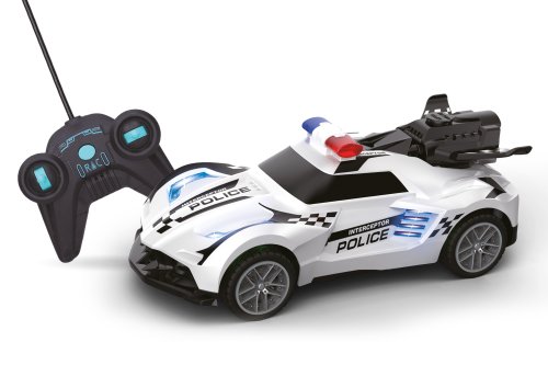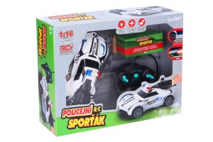 Auto policejní svítící s kouřovými efekty RC na dálkové ovládání. Velikost 18 cm. Frekvence 40 MHz. Světelné a kouřové efekty. Bateriový pack 3.7V Li-ion do auta součástí, 2xAA do ovladače nejsou součástí. USB kabel součástí. Nádržka na vodu na křídle. Nádobka na vodu součástí. Přepínač ON/OFF na spodní straně auta. Tlačítko mezi páčkami na ovladači - kouřové efekty.