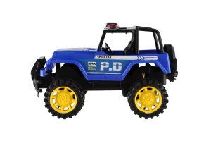 Plastový policejní jeep na setrvačník o velikosti cca 22 cm. S tímto už vám neujede žádný lump v terénu. Vhodné od 3 let.