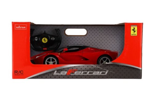 Krásný RC model auta Ferrari Kabriolet v červené barvě s černými prvky. Jedná se o propracovaný model s plastovými doplňky, auto má otevírací dveře. Auto je na dálkové ovládání ve tvaru sportovního volantu a dokáže se pohybovat do čtyř směrů - dopředu, dozadu, doprava a doleva. Tento model má i funkci driftování do zatáčky. Frekvence je 2,4GHz. Měřítko je 1:14. Do auta patří 5x baterie AA, do ovladače 2x baterie AA, které nejsou součástí balení. Provozní doba: 30 minut Vzdálenost dálkového ovládání: 20 metrů Velikost auta je 32 cm. Rozměr balení: 43 x 19 x 23 cm Vhodné pro děti od 6 let
