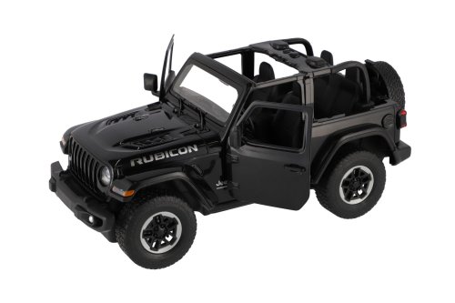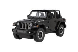 Krásný RC model auta Jeep Wrangler Rubicon v černé barvě s červenou palubní deskou. Jedná se o propracovaný model s plastovými doplňky, auto má otevírací dveře. Auto je na dálkové ovládání ve tvaru sportovního volantu a dokáže se pohybovat do čtyř směrů - dopředu, dozadu, doprava a doleva. Frekvence je 2,4GHz. Měřítko je 1:14. Provozní doba: 30 minut Vzdálenost dálkového ovládání: 20 metrů Do auta patří 5x baterie AA, do ovladače 2x baterie AA, které nejsou součástí balení. Velikost auta je 29 cm. Rozměr balení: 44 x 19 x 26 cm Vhodné pro děti od 6 let