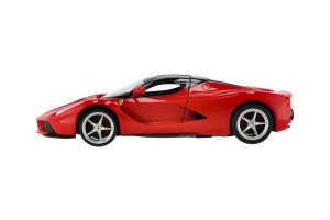 Krásný RC model auta Ferrari v červené barvě s černými prvky. Jedná se o propracovaný model s plastovými doplňky, auto má otevírací dveře. Auto je na dálkové ovládání ve tvaru sportovního volantu a dokáže se pohybovat do čtyř směrů - dopředu, dozadu, doprava a doleva. Frekvence je 2,4GHz. Měřítko je 1:14. Do auta patří 5x baterie AA, do ovladače 2x baterie AA, které nejsou součástí balení. Provozní doba: 30 minut Vzdálenost dálkového ovládání: 20 metrů Velikost auta je 32 cm. Rozměr balení: 43 x 18 x 25 cm Vhodné pro děti od 6 let