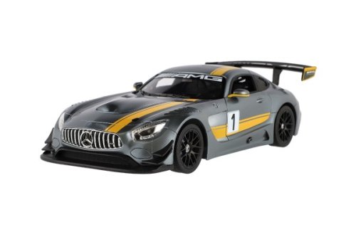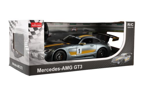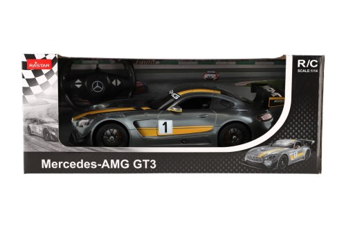 Krásný RC model auta Mercedes AMG GT3 v šedé barvě se žlutými pruhy. Jedná se o propracovaný model s plastovými doplňky. Auto je na dálkové ovládání ve tvaru sportovního volantu a dokáže se pohybovat do čtyř směrů - dopředu, dozadu, doprava a doleva. Frekvence je 2,4GHz. Měřítko je 1:14. Do auta patří 5x baterie AA, do ovladače 2x baterie AA, které nejsou součástí balení. Velikost auta je 35 cm. Provozní doba: 30 minut Vzdálenost dálkového ovládání: 20 metrů Rozměr balení: 44 x 18 x 23 cm Vhodné pro děti od 6 let