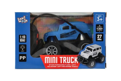 Závodní zážitek v mini formátu! Tento RC mini truck v modré barvě přináší spoustu zábavy. Funguje na frekvenci 27MHz. Ideální auto na závody v interéru i venku. Auto na baterie 4 x AA, které nejsou součástí balení. Velikost auta: 12 cm Rozměr balení: 18 x 11,5 x 10 cm Vhodné pro děti od 3 let