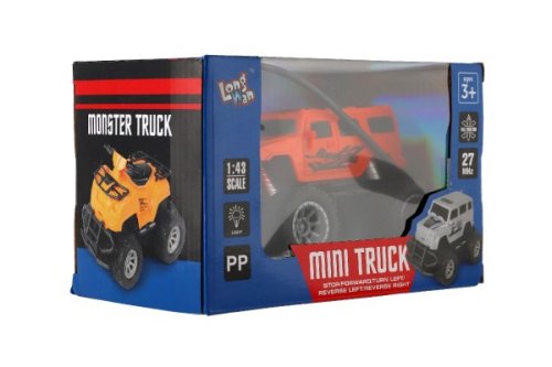 Závodní zážitek v mini formátu! Tento RC mini truck v oranžové barvě přináší spoustu zábavy. Funguje na frekvenci 27MHz. Ideální auto na závody v interéru i venku. Auto na baterie 4 x AA, které nejsou součástí balení. Velikost auta: 12 cm Rozměr balení: 18 x 11,5 x 10 cm Vhodné pro děti od 3 let