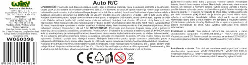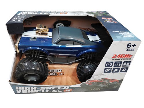 Auto RC na dálkové ovládání. Rozměry 43,5x29,5x27 cm. Pistolový ovladač. Frekvence 2.4GHz. Světelné efekty. Bateriový pack 7.4V 800mAh do auta součástí, 2xAA do ovladače nejsou součástí. USB kabel součástí. Provoz 15-20 min, nabíjení 180 min, dosah 15-20 m. Přepínač ON/OFF na spodní straně auta a na ovladači. Tlačítko na ovladači.