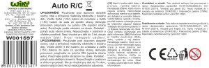 jezdí dopředu, dozadu, zatáčí doprava i doleva auto - baterie 3xAA (nejsou součástí) ovladač - baterie 2xAA (nejsou součástí) Velikost: 18 cm