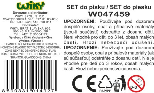 Auto sada na písek. Rozměry auta 32x21x18 cm. Obsah balení - kyblík, konvička, lopatka, hrabičky, 4x formičky.