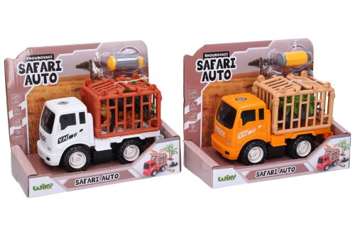 Auto safari šroubovací. Rozměry 16x10x6,5 cm. Součástí auto, šroubovák, 2 koncovky šroubováku, 2 figurky zvířátek, strom. Na setrvačník. 4 varianty - žlutá, modrá, červená, bílá.