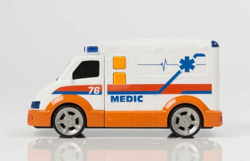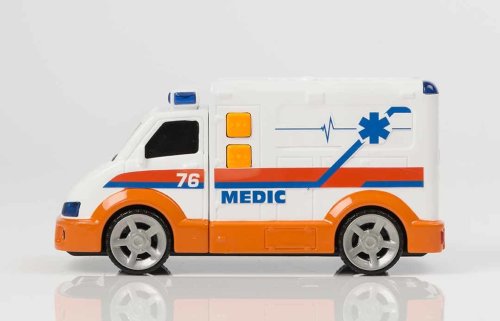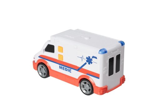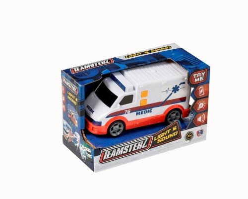 Nový model sanitky záchranné služby od Teamsterz se zvukem a světlem. Výborně propracovaný design a velikost auta zaujme každého malého záchranáře Sanitka má funkční maják. Realistické zvuky: startování, výjezd k akci, rychlá jízda s houkačkou. Rozměry auta: 15 × 7,5 cm. Rozměry balení: 17,5 × 11 × 9 cm. Baterie 3 x LR44 (jsou součástí balení). Kvalitní plastové zpracování. Vhodné pro děti od 3 let.
