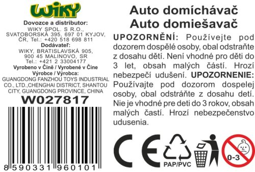 Auto stavební domíchávač. Rozměry 31x15x23(v) cm. Volná kola.