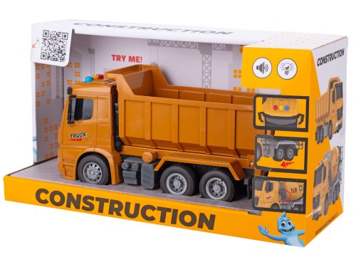 Auto stavební sklápěčka 26 cm na setrvačník na baterie se světlem a zvukem