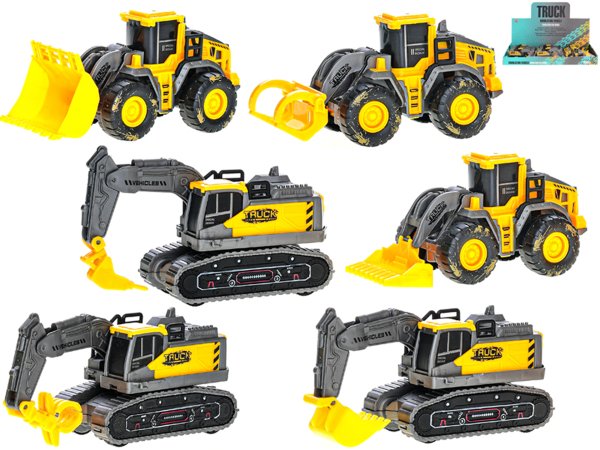 Stavební vozidla žlutá 11,5cm na setrvačník 9druhů 12ks v DBX