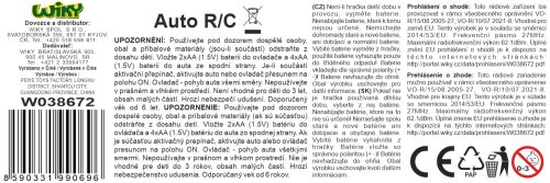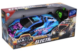 Auto svítící RC na dálkové ovládání. Rozměry 27x12x8 cm. Frekvence 27 MHz. Pistolový ovladač. Světelné efekty celého auta. Baterie 4xAA do auta, 2xAA do ovladače (celkem 6xAA, nejsou součástí).