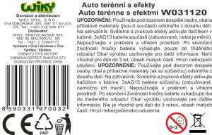 Auto terénní s efekty. Rozměry 23x12,5x10,5 cm.