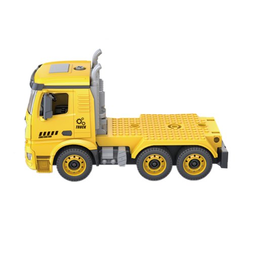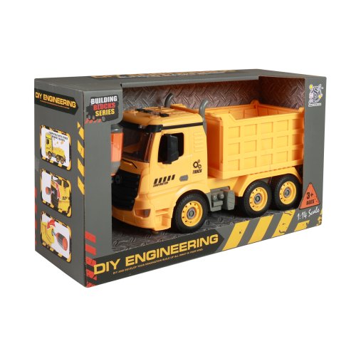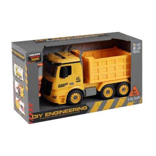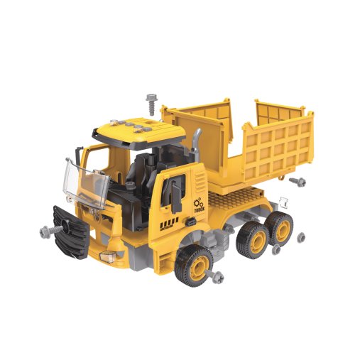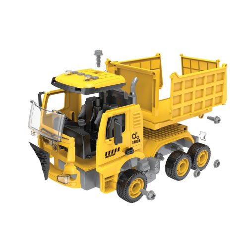 Šroubovací auto sklápěč, které se dá pomocí přiloženého dětského šroubováku snadno rozložit a zase složit. Rozvíjí technickou zručnost a kreativní myšlení. Po zmáčknutí libovolného tlačítka svítí a vydává reálné zvuky. Funguje na 3 x 1.5V LR44 baterie, které jsou součástí balení. Auto jezdí na volný chod a jeho délka je 26 cm.