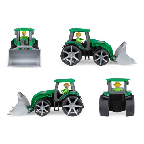 Atraktivní traktor ze série TRUXX 2 je velmi pevný a odolný, vhodný i ke hraní venku, na pískovišti. Je vybaven figurkou usměvavého řidiče a díky odklopné střeše je prostor kabiny snadno přístupný hrám. Funkční lopata je pro snadnou manipulaci vybavena madlem. Hračka je vyrobena z nezávadného plastu, dodávána v pestrobarevné krabici s průhledem. Hlavní vlastnosti:figurka řidiče, přístupná kabinafunkční, snadno ovladatelná lopatapevné a odolné provedení