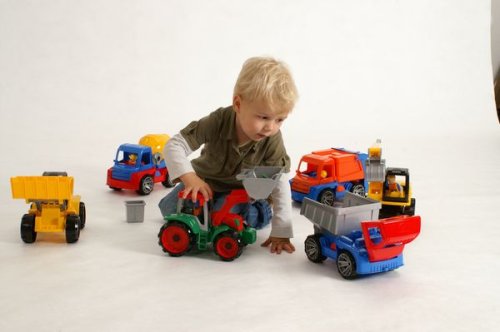 Traktor Truxx je vyroben z kvalitního plastu. Hračka má velmi pevnou stavbu. Traktor je velký 35 cm. Je plně mechanicky funkční. Obsahuje odklopitelnou kabinu s aktivním panáčkem. Vhodné od 2 let.