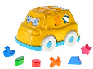 Vkládačka v podobě autíčka 2v1 vhodná pro děti od 12 měsíců. Roztomilý vzhled autíčka si děti zamilují. Vkládáním kostiček v podobě geometrických tvarů a zvířátek se u dětí rozvíjí psychomotorické schopnosti.