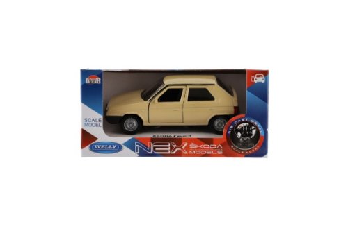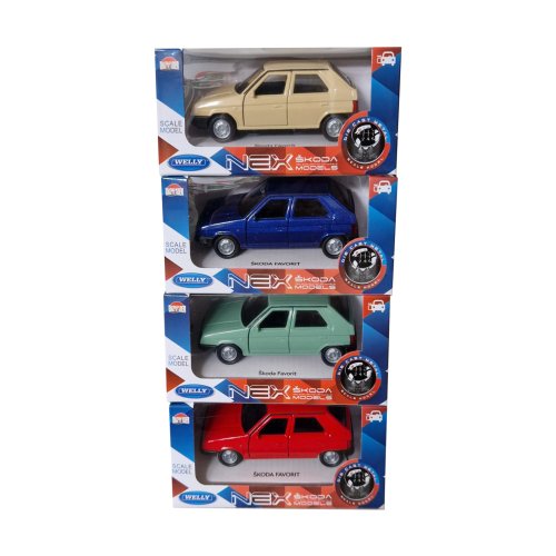 Auto Škoda Favorit v měřítku 1:34. Vyrobené z kovových a plastových dílů, otevírací dveře. Baleno v papírové krabičce s fóliovým průhledem, obal Škoda models. Přišroubováno na papírovém podstavci s popisem typu. Rozměr auta: 11 cm Rozměr balení 15 x 7 x 7 cm Vhodné pro děti od 3 let