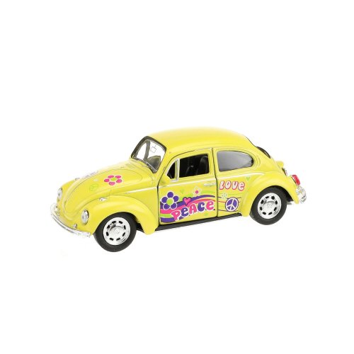 Krásný model VW beetle na zpětné natažení s květinovým postiskem je tady v měřítku 1:32. Autíčko o velikosti 12 cm může mít každý z nás neustále u sebe. Vejde se do větší kapsy nebo mamince do kabelky a cestování či dlouhé čekání tak rychle uteče. Skvělé na hraní nebo závodění. Rozměry: 12 x 5 x 4,5 cm Vhodné pro děti od 3 let